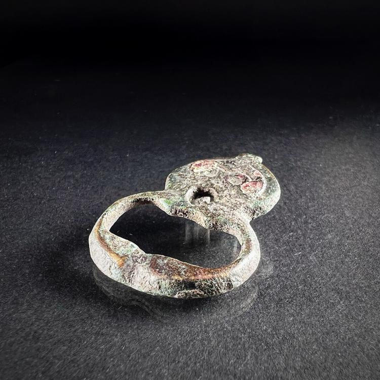 Lovely ancient bronze clothing buckle. The Celts were a collection of tribes with origins in central Europe in the Late Bronze Age and through the Iron Age (c. 700 BC-400AD) that shared a similar language, religious beliefs, traditions and culture. Their tribes and groups eventually ranged from the British Isles and northern Spain to as far east as Transylvania, the Black Sea coasts, and Galatia in Anatolia and were in part absorbed into the Roman Empire as Britons, Gauls, Boii, Galatians, and Celtiberians. Across Europe, the Celts have been credited with many artistic innovations, including intricate stone carving and fine metalworking. Typical art objects include ornate cauldrons, sandstone or wooden human figures, bronze shields, gold torcs, fibulae, buckles, penannular brooches, and animal figurines to be used as votive offerings.