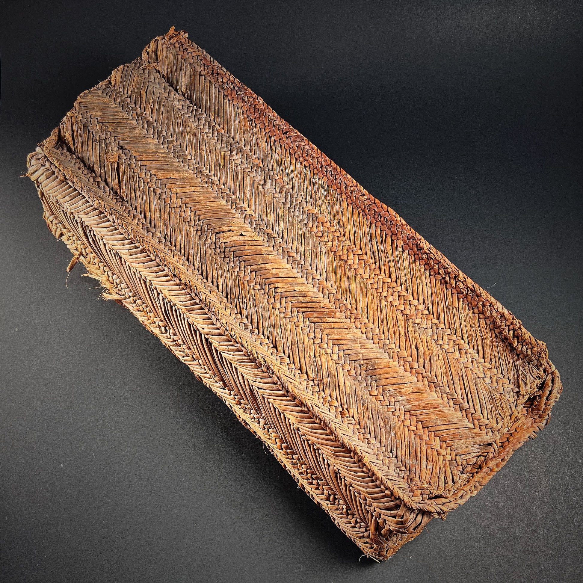 Excellent condition. Intact. Minor structural damages. Light surface wear with some minor fray to edges commensurate with age and use. Size approx. 34,0cm x 14,5cm x 7,6cm.