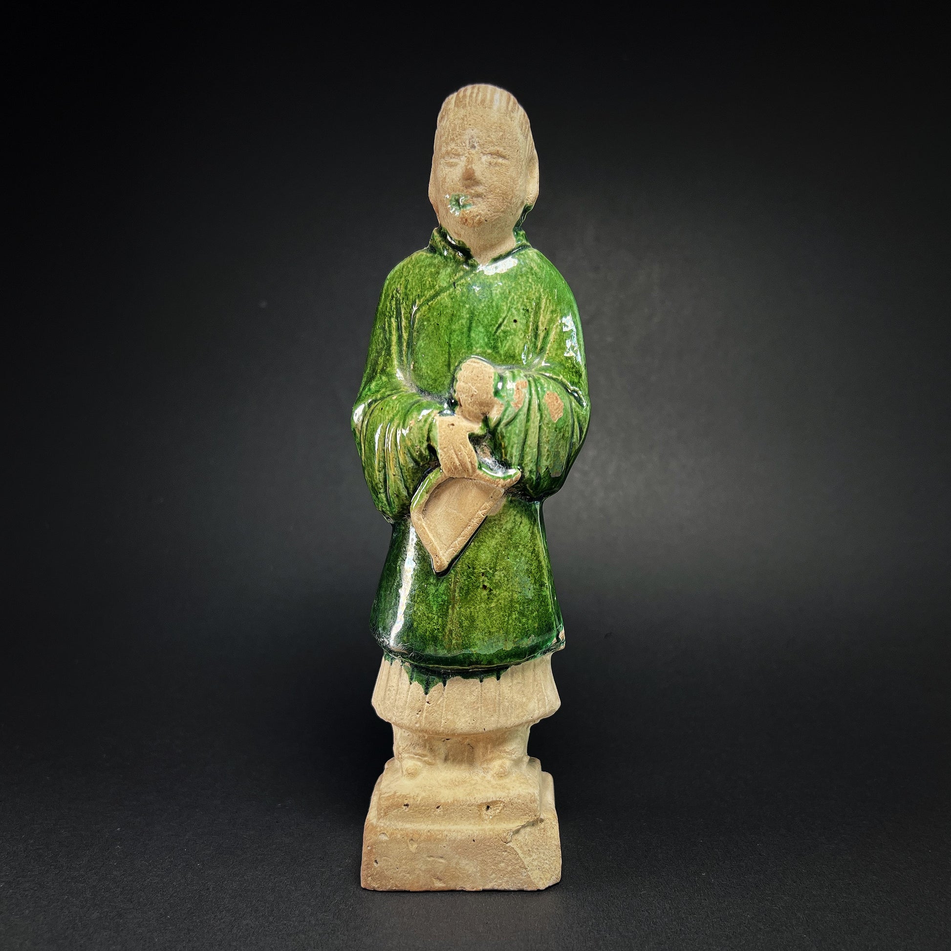 Ming Dynasty Green Glazed Pottery Female Tomb Attendant