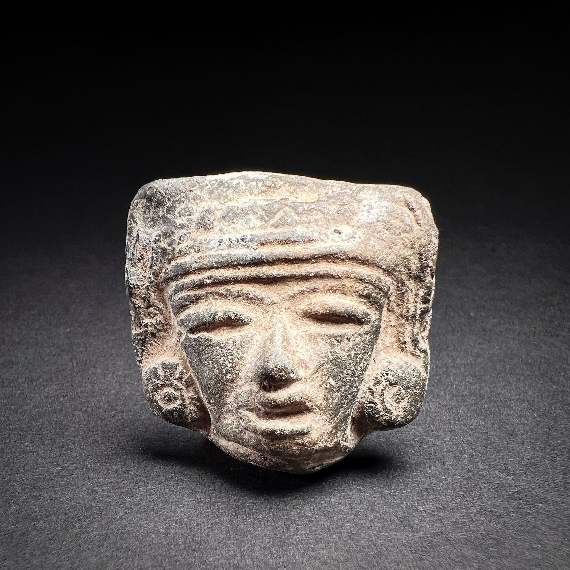 A rare and evocative artifact, this terracotta head offers a tangible connection to the grandeur and mystery of Teotihuacan’s past. A true collector’s piece, it embodies the artistic and cultural legacy of one of Mesoamerica’s greatest civilizations.